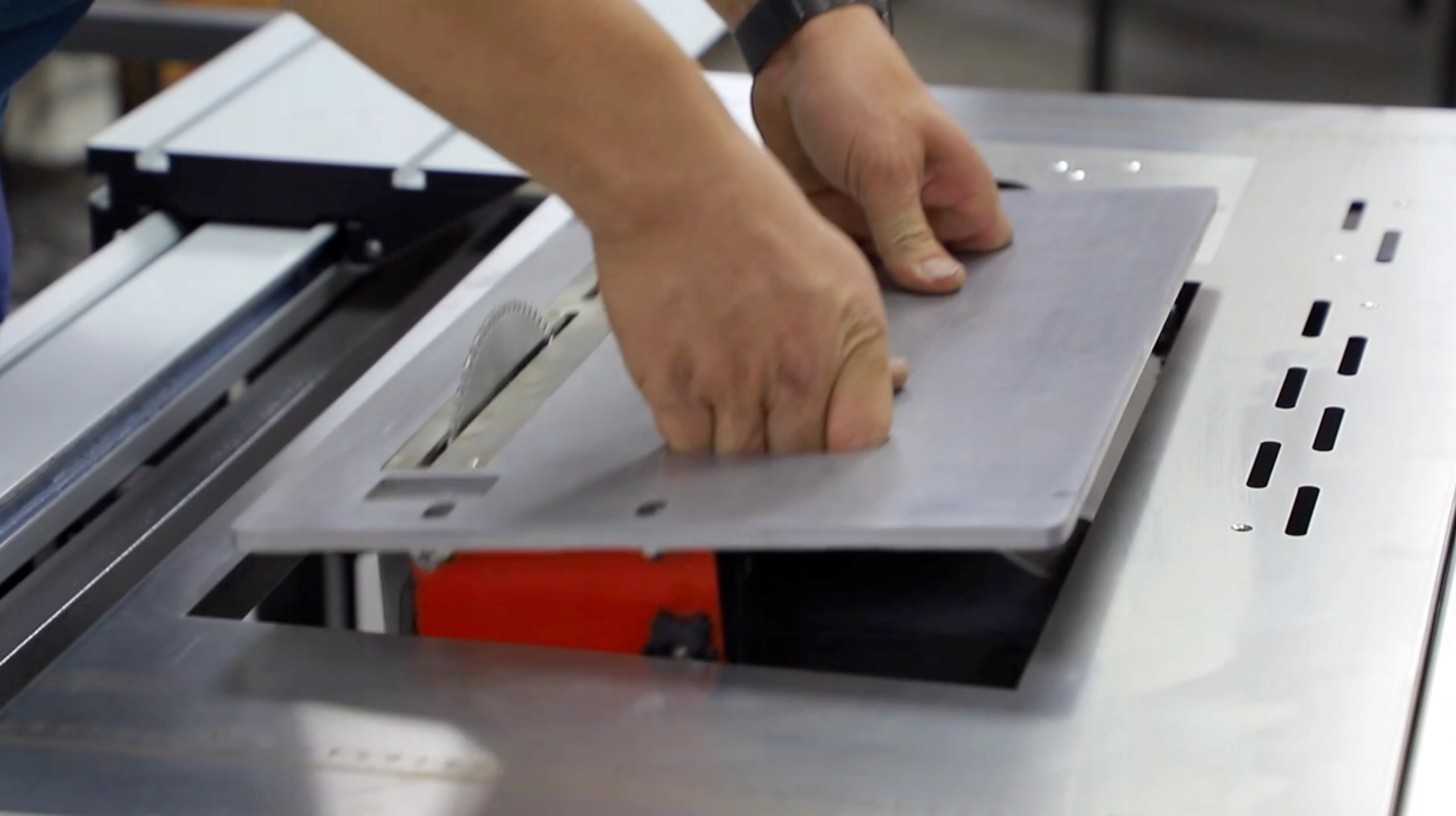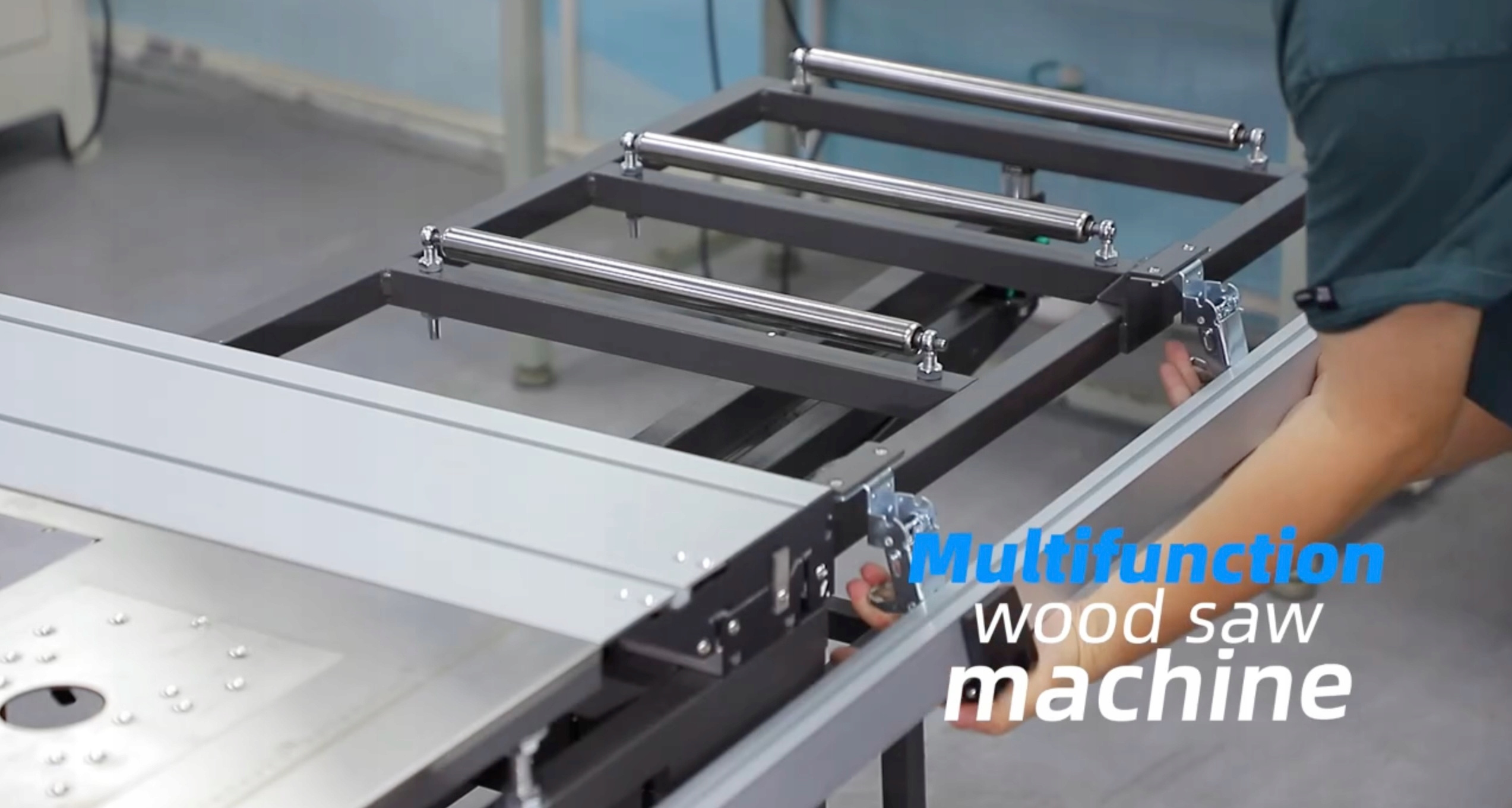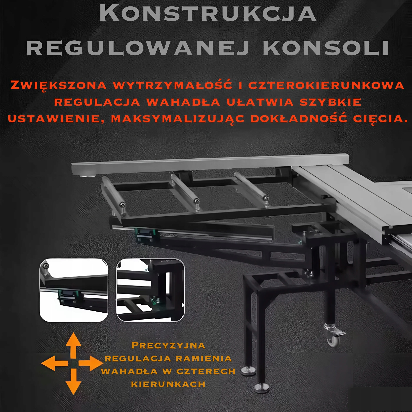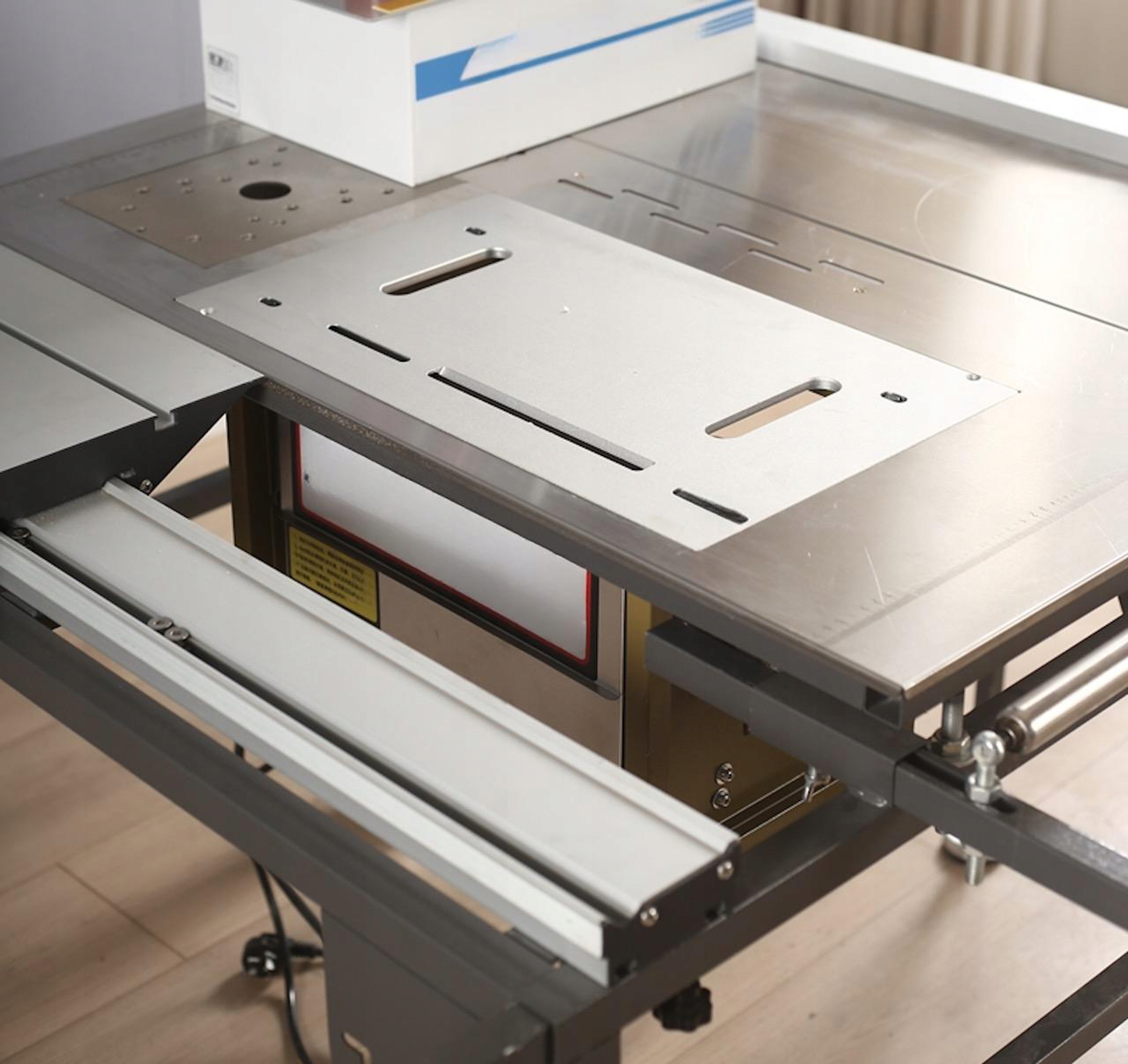 ⚙️ Wysuwany, wahadłowy stół roboczy umożliwiający cięcie dłuższych elementów